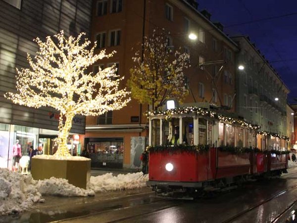 Um 15:00 fährt die Christkindlbahn am Stubaitalbahnhof ab, und ab 15:30 jeweils zur ganzen und zur halben Stunde vom Hauptbahnhof bis 18:00.